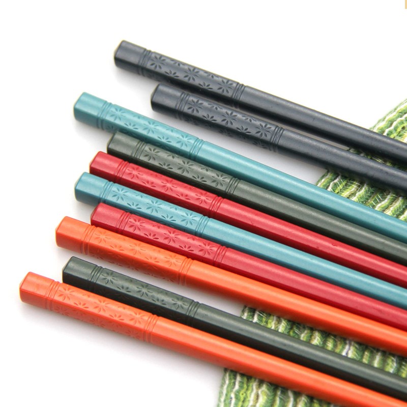 • 【UNIQUE DESIGN】 The top of the chopsticks is carved with Cherry Blossom pattern, which comes with 5 different delightful colors, which is a typical Japanese style with strong Asian customs. Assemble with other cutlery and tableware, this colorful flatware will add cheerful atmosphere to your dining table. It's easy to distinguish with multicolor design, which can help you distinguish your own chopsticks from others(include 5 Pairs Chopsticks and 6 Helpers)