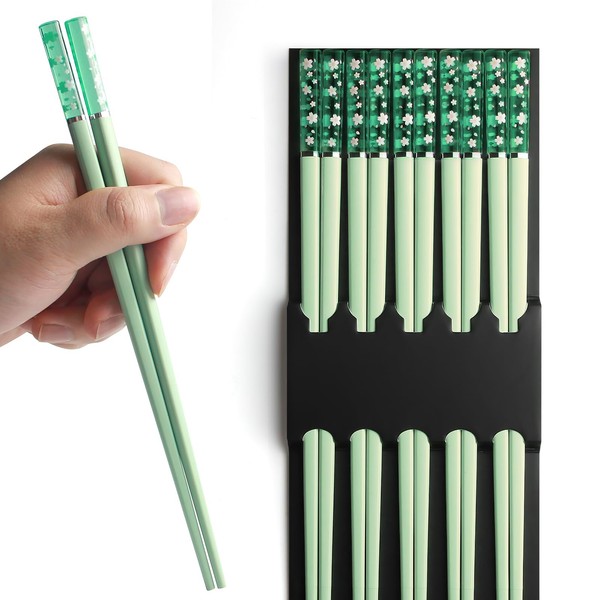 Chopsticks,Chopsticks Dishwasher Safe,5 Pairs 9.45In/24cm Colorful Lightweight Fiberglass Chopsticks Japanese Chopsticks,Chopsticks Reusable,Non-slip Chop Sticks,Green