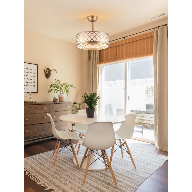 Chords Attic Gold Fandelier Ceiling Fans with Lights, Boho Caged Chandelier Ceiling Fan with Remote, 18" Enclosed Rattan Ceiling Fan with 6 speeds for Living Room Bedroom Nursery