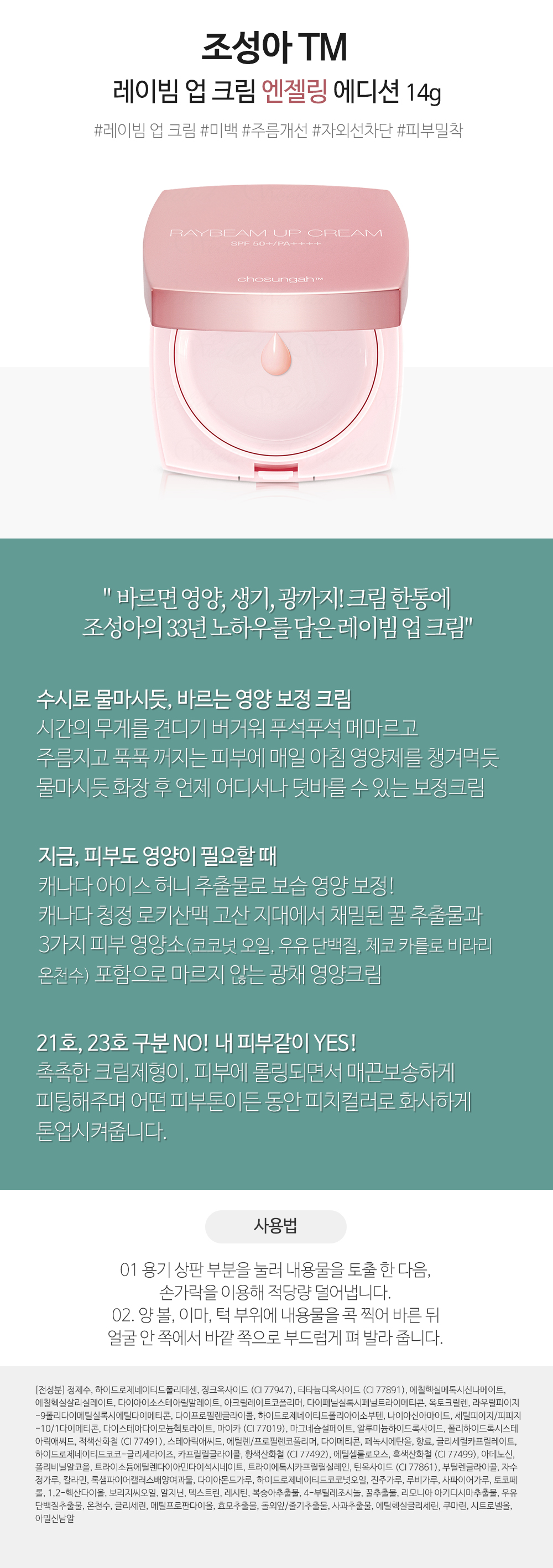 Chosungah22 ChosungahTM Ray Beam Up Cream 14g (SPF50+) Main Product_B / 조성아22 조성아TM 레이빔 업 크림 14g(SPF50+) 본품_B