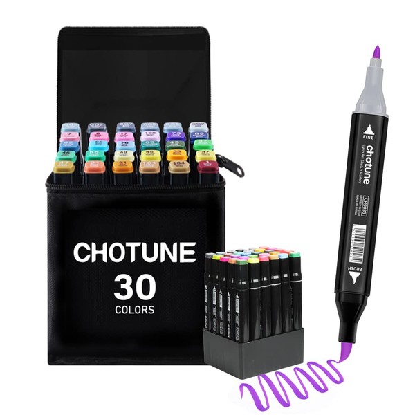 CHOTUNE Alcohol Marker Set, 30 Colours, Soft Brush and Fine Double Tip Sketch...