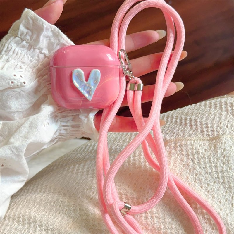 ChouXiLin AirPods 4 Case with Neck Strap - Pink Marble Heart Design, Shockproof Silicone Protective Cover for Women Travel, Compatible with AirPods 4/4(2024 NC) & Detachable Keychain,Cute