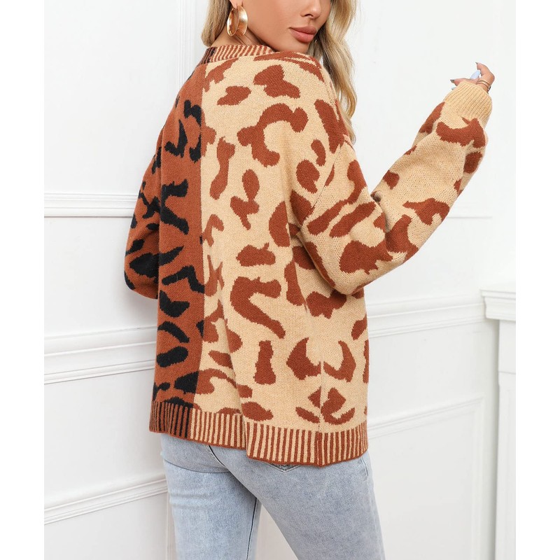 - Fashion knitted cardigan sweaters for women featuring vintage leopard printed pattern, so cool in contrast color style, comfortable, elegant and flattering to wear.