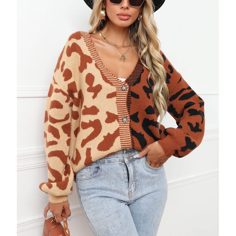 - Cute leopard print cardigan sweaters for women lightweight, trendy leopard color block sweater cardigan coat, versatile to match with your jeans, leggings, boots for a modern woman look.