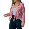 - Crop faux leather fringe jacket for women featuring flowy tassel trim in front and back, turn down notch lapl, long sleeve, open front placket, relaxed fit