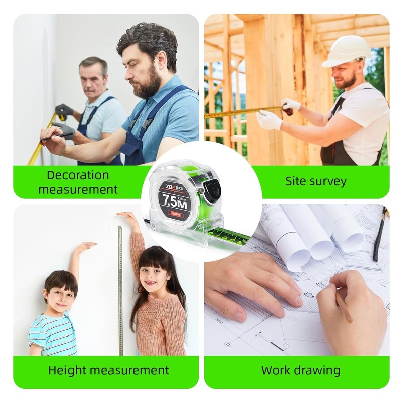- Versatile Use: Designed for craftsmen and home users, this tape measure is ideal for construction, furniture assembly, height tracking, and everyday measurements.