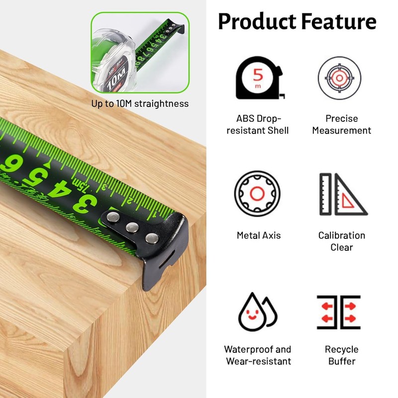 - Effortless Operation: Self-lock mechanism holds the tape measuring in place, paired with smooth retraction to prevent tangling, supporting efficient one-handed use for repetitive tasks.