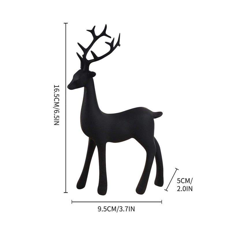Enhance the charm of your living space with our Elegant Resin Reindeer Sculptures - a captivating set of two black deer decorations designed for both home and office settings. Crafted with meticulous attention to detail, these miniature deer statues serve as stylish desk ornaments, adding a touch of sophistication to any environment.