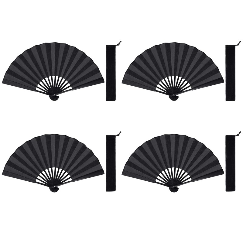 choyaxo 4 Set 13 inches Black Folding Hand Fan Large Chinese Folding Fan for Performance Wedding Decoration Dancing Party Gift