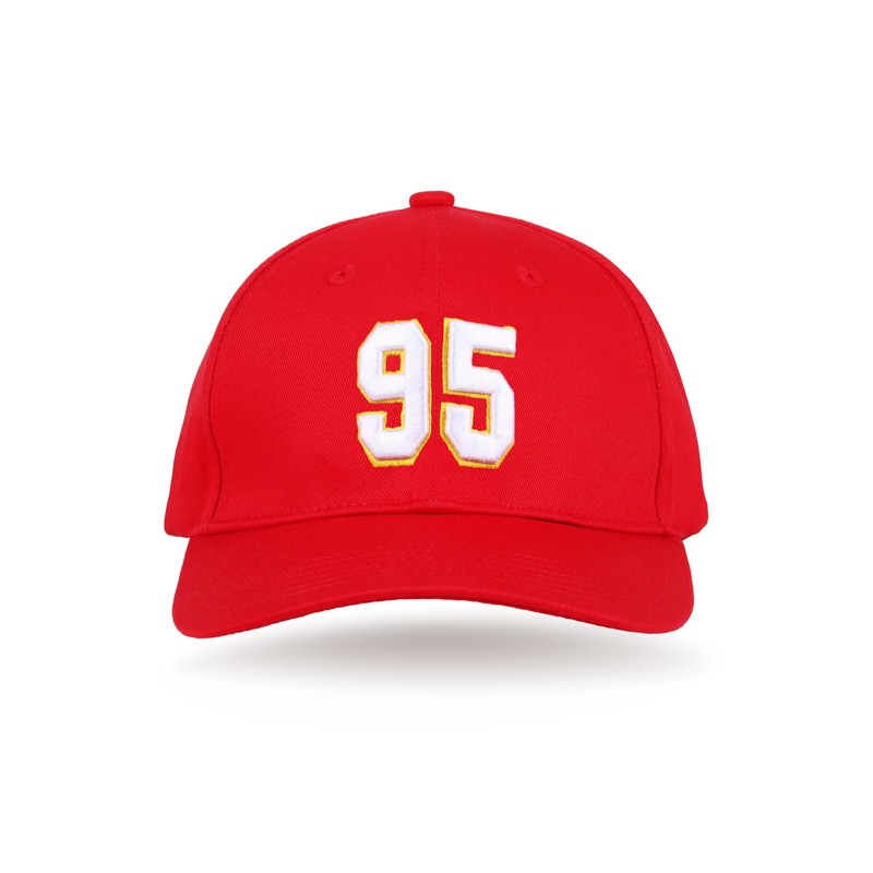 Chris Jones 95# Red Embroidered Baseball Cap Flat Brim Hat with Stitching for Sports Outdoor - Unisex