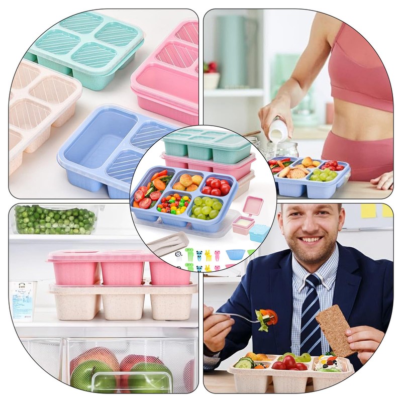 - 5-Compartment Snack Box: These food storage containers feature a 5-compartment design, providing ample space to separate main dishes, snacks, and fruits according to your dietary plan. They offer a healthy and balanced diet while preventing food flavors from mingling