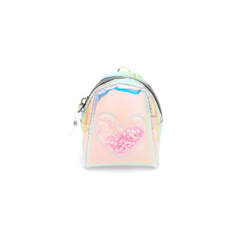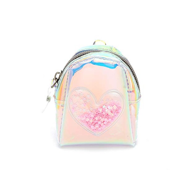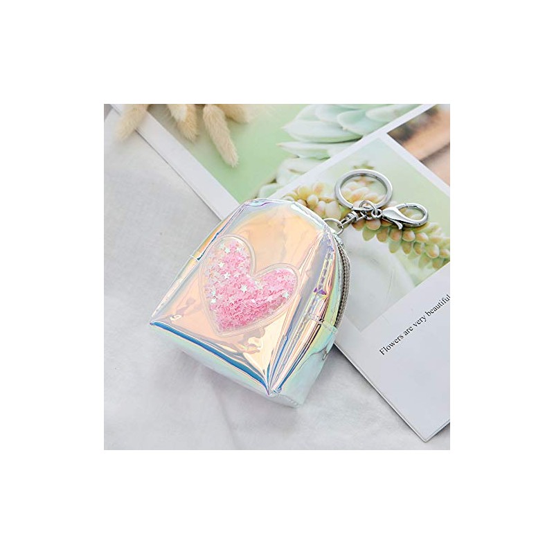 Chris.W Holographic Transparent Zipper Coin Pouch Bag Mini Heart Star Change Purse with Key Chain Clip for Women Girls