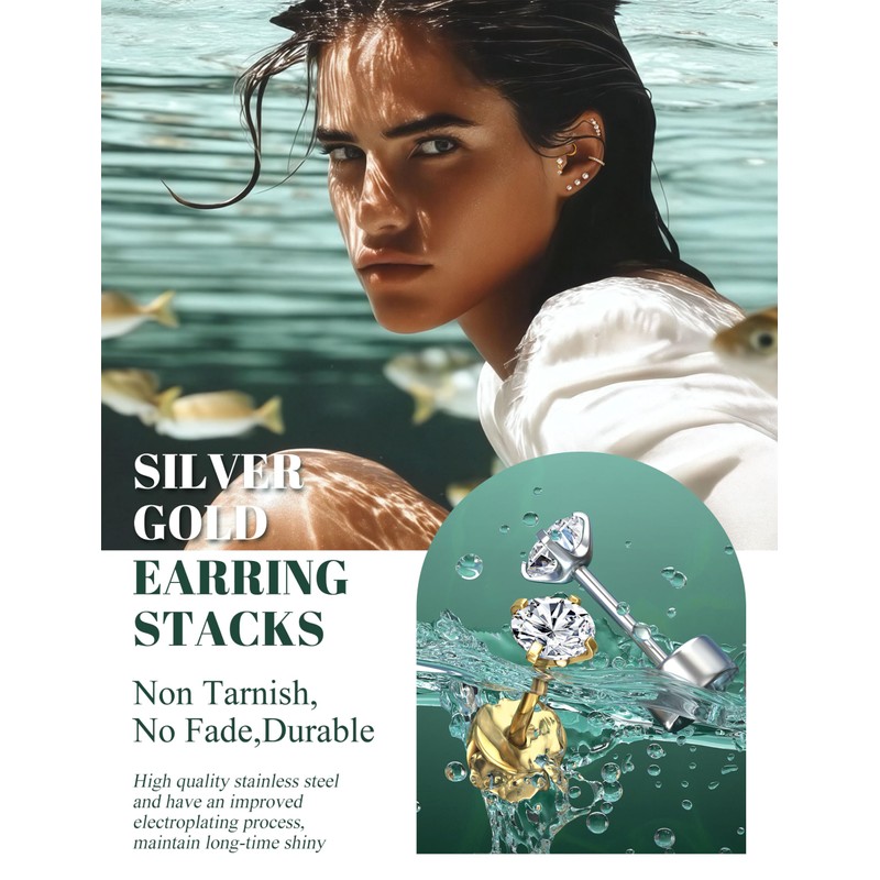 Ohrstecker-Set zum Stapeln – Unser vielseitiges Ohrstecker-Set umfasst eine sorgfältig zusammengestellte Kollektion von flachen Ohrsteckern, Tragus-Piercing-Schmuck, Helix-Piercing-Schmuck, Cartilage-Ohrsteckern, Conch-Piercing-Schmuck, Daith-Piercing-Schmuck sowie zarten kleinen Creolen und bietet endlose Styling-Möglichkeiten für den Alltag. Entwickelt für modebewusste Frauen ist jedes Stück leicht, bequem und ideal für langanhaltendes Tragen. Wähle zwischen elegantem Silber- oder stilvollem Gold-Finish, um jedes Outfit zu ergänzen.