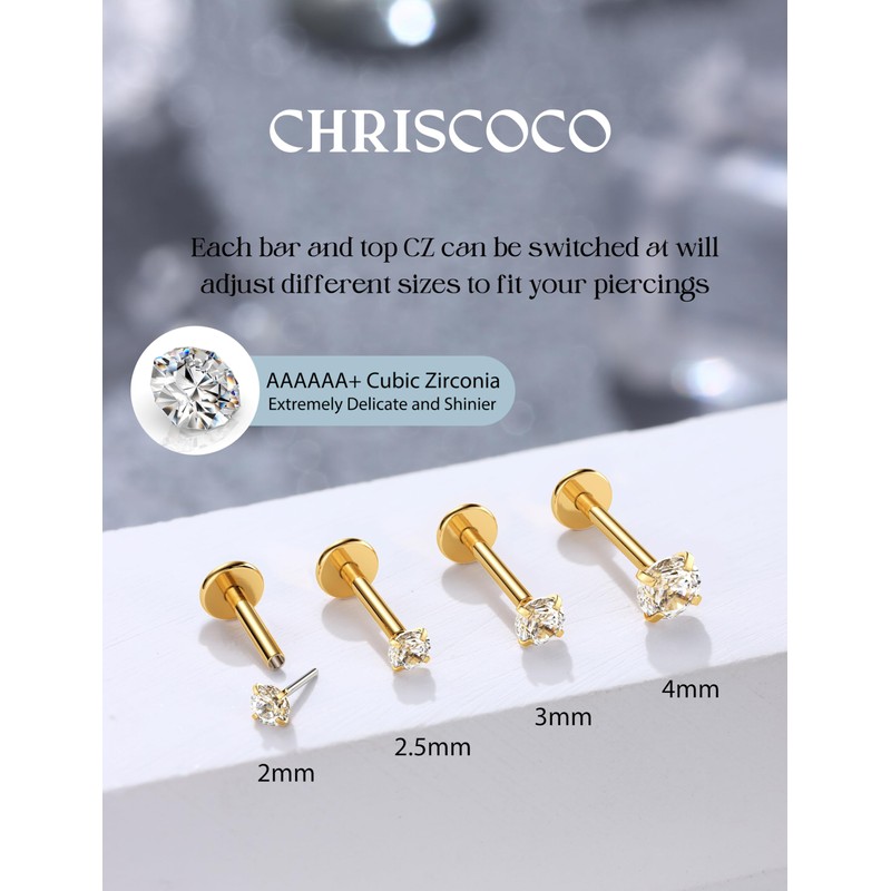 - Durable and stylish: with 14K gold coated and set with AAAAA+ zirconia, these piercing gold studs remain permanently shiny and tarnish-proof. Ideal as a helix gold, tragus piercing gold or elegant nose stud. Supplied in a high-quality velvet bag - ideal for yourself or as a special surprise