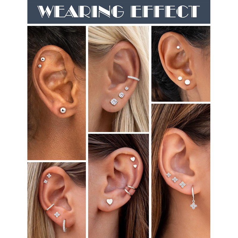 - 【Earring Sets for Multiple Piercing】You can wear alone,or stacking with other earrings,cartilage earring stacks,stud & hoop silver earrings set for tragus conch helix piercing jewellery.Perfect for any occasion to wear:Daily Life, Party, Ball,Wedding,Anniversary,Graduation,Engagement or any other Special Occasions. Suitable for Matching T-shirt, Skirt, Jeans, Dress, Suit, Sweater, Coat etc