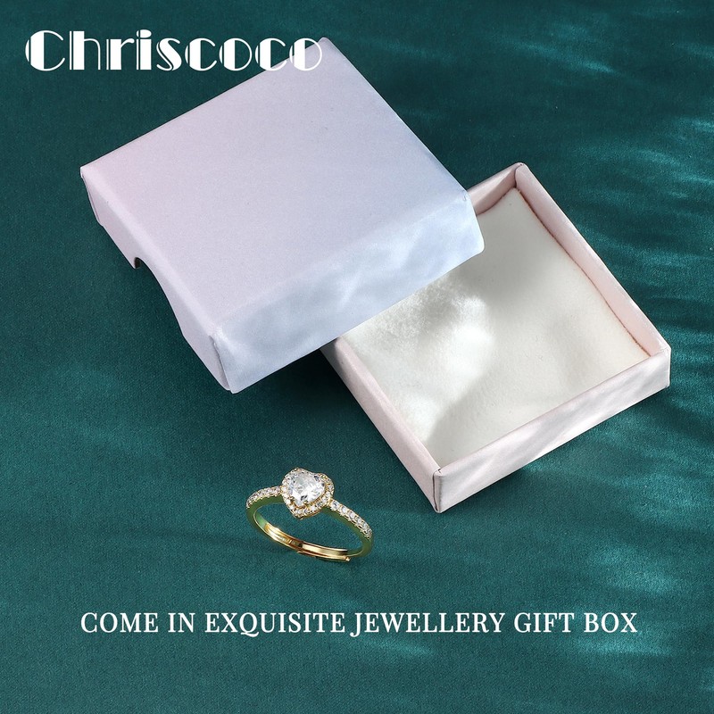 Chriscoco 925 Sterling Silver Ring for Women Gold Love Heart Ring Adjustable Cubic Zirconia Rings Simulated Diamond Ring Engagement Promise Wedding Rings with Jewellery Box