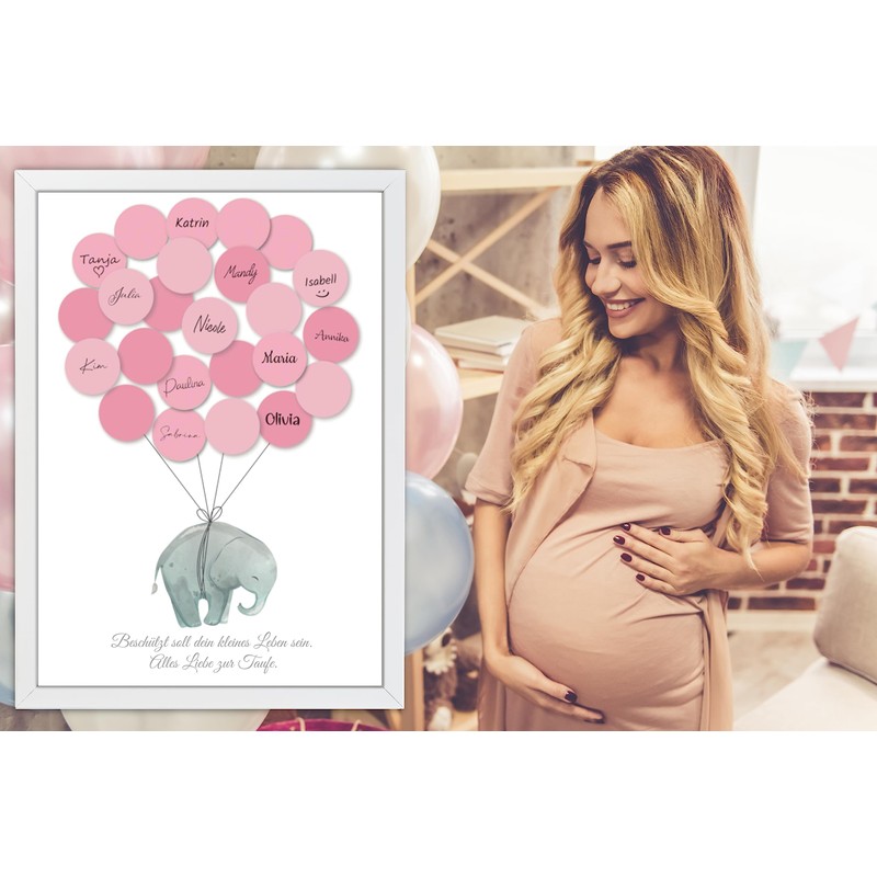 - Great reminder: Super cute elephant motif and beautiful christening saying. Finished with 24 writeable paper balloons (approx. 3 cm diameter) in 2 different shades.