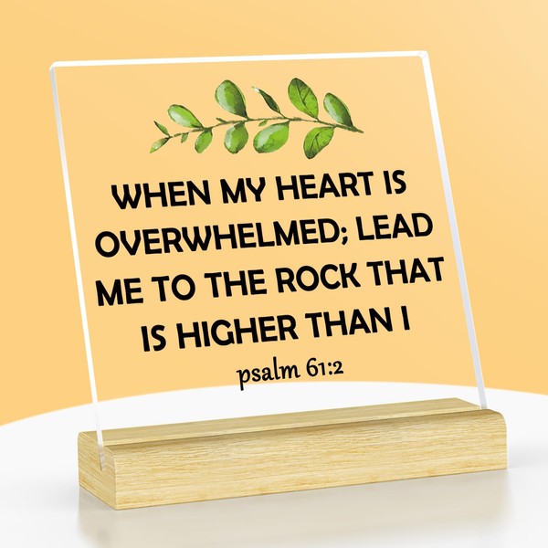 - Inspirational Christian Gifts:This Christian acrylic decor signs is printed with "WHEN MY HEART IS OVERWHELMED;LEAD ME TO THE ROCK THAT IS HIGHER THAN I psalm 61:2", It makes a thoughtful and inspirational gift for her.Great for religious gifts for women, inspirational gifts for women, christian gifts for women faith, bible gifts for women, encouragement gifts for women.