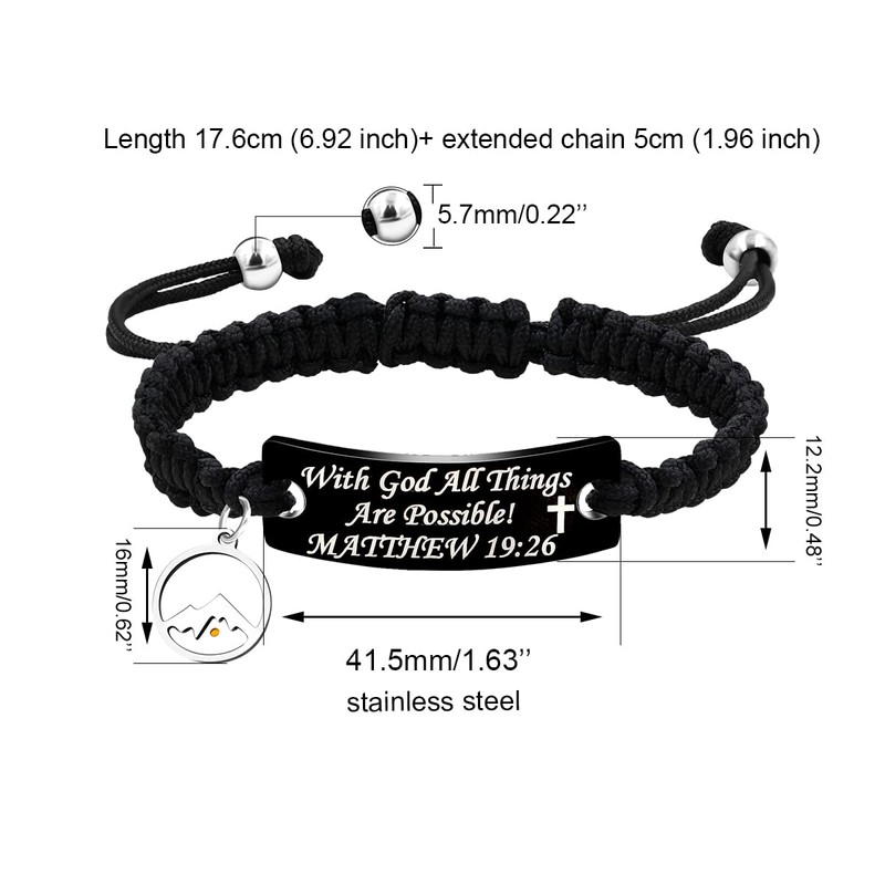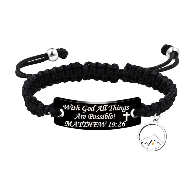 Christian Braided Rope Bracelets Engraved With God All Things are Possible Matthew 19 26 (Y2565-black-RoundMountain)