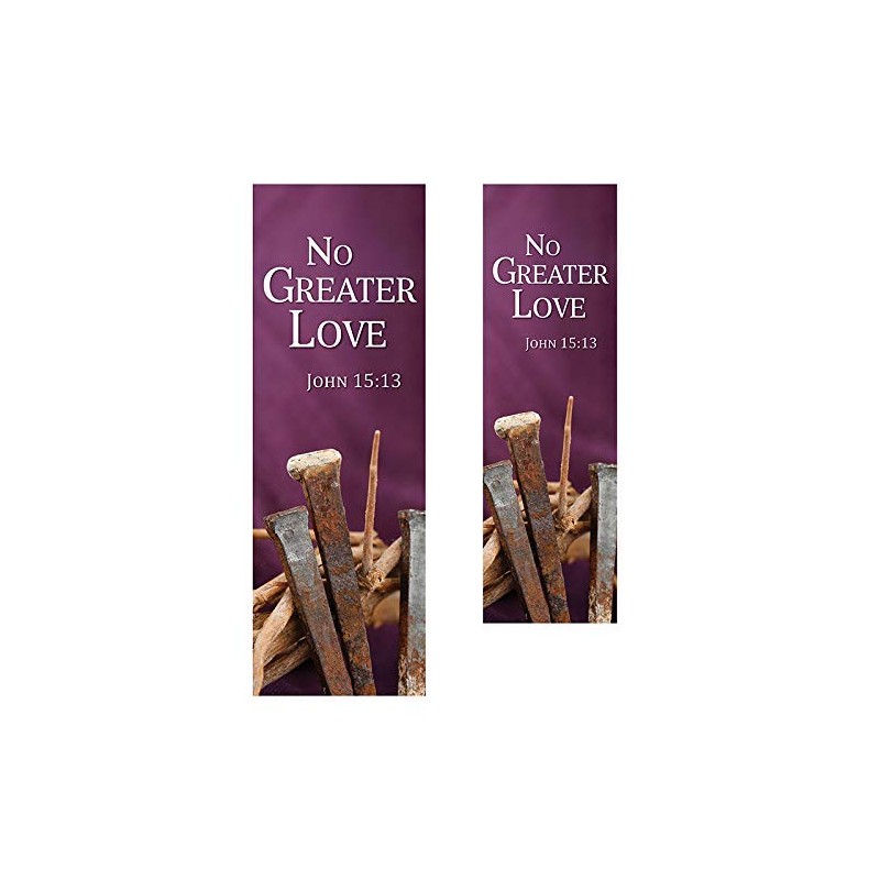 Part of the New Life Series, this No Greater Love banner is meant for every day Liturgical or Lent/Easter use, and is available in a variety of size options to best suit the needs of your church. Features clear and vibrant images printed in high resolution with wrinkle-resistant, luxurious satin polyester fabric.