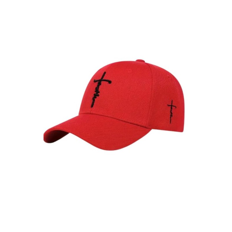 Christian Faith Hat - Faith Cross - Proudly Display Your Love and Devotion for Jesus - Comfortable - Adjustable (Red)