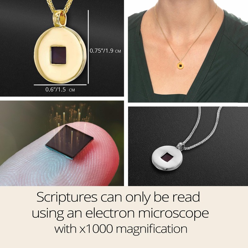 - The Entire King James Version Holy Bible On A 0.2 Inches Microchip, set into the unique Christian circle pendant, using innovative technology to nano print onto the chip. Each jewelry piece includes a Certificate Of Authenticity