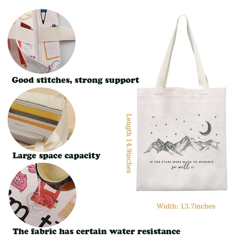 Christian Tote Bag Worship Canvas Bag Religion Baptism Gift Bible Verse Gift If The Stars Were Made To Worship So Will I Gift (CA-WorshipSoWill ToteBS)