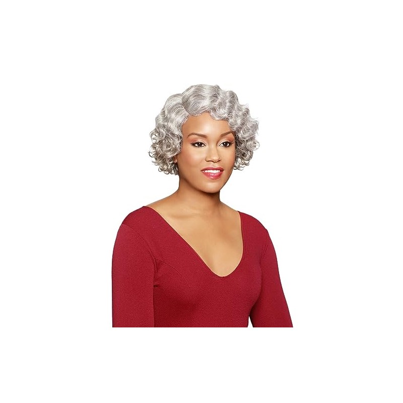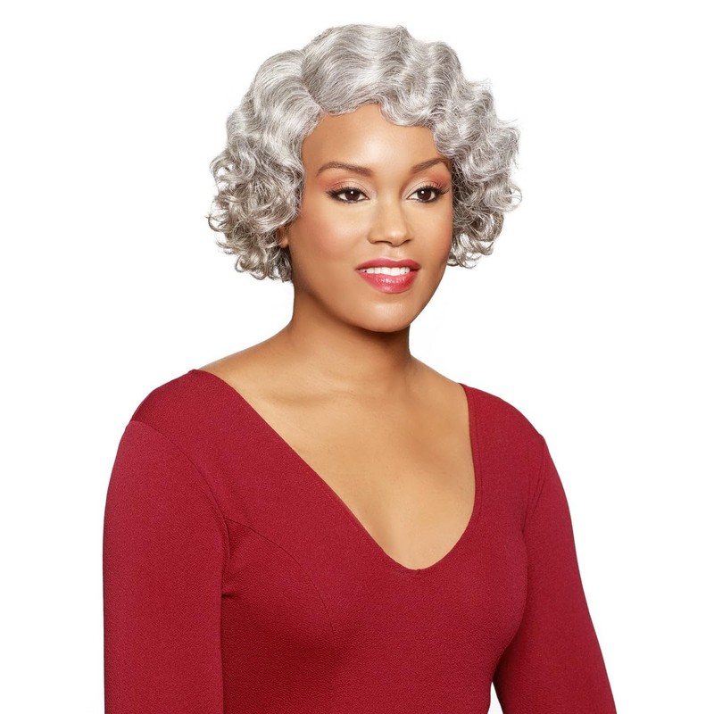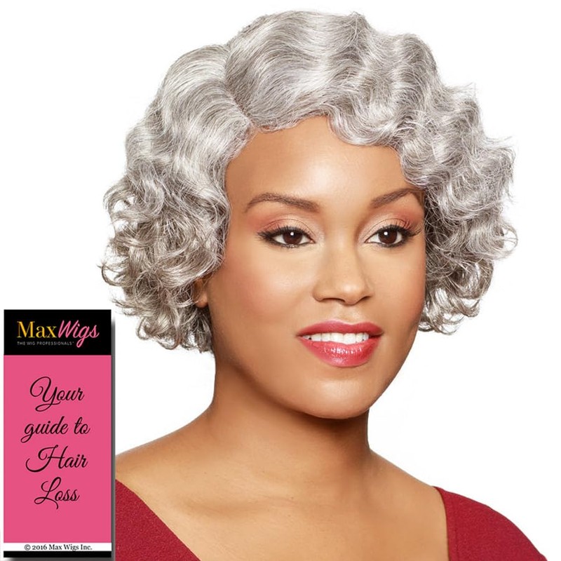 - Christine Wig Color F1B30 - Foxy Silver Wigs Short Fingerwave Wavy Fusion Heat Resistant Synthetic J Part African American Average Cap Bundle Maxwigs Hairloss Booklet