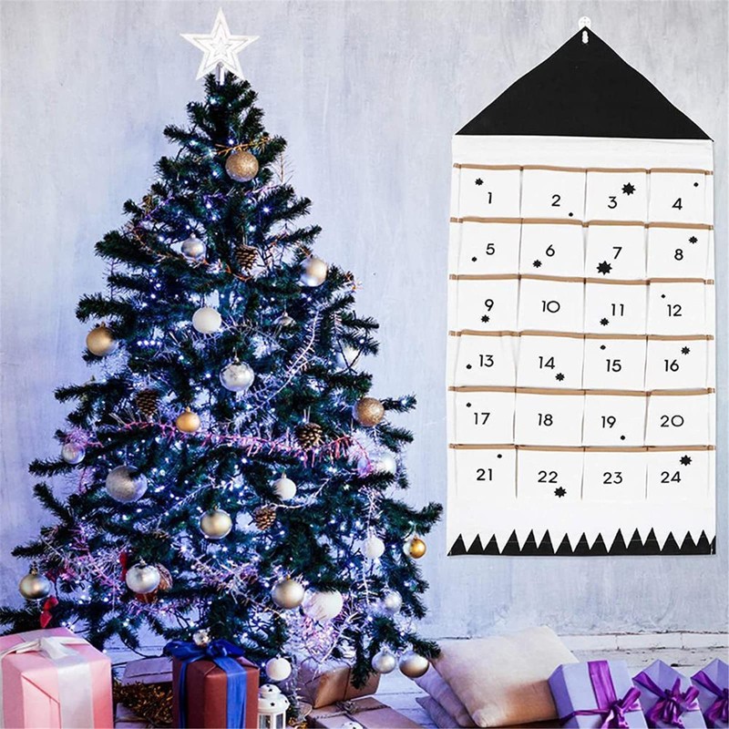 Christmas 24 Day Advent Calendar with Pockets Wall Hanging Bag for Holiday Decoration