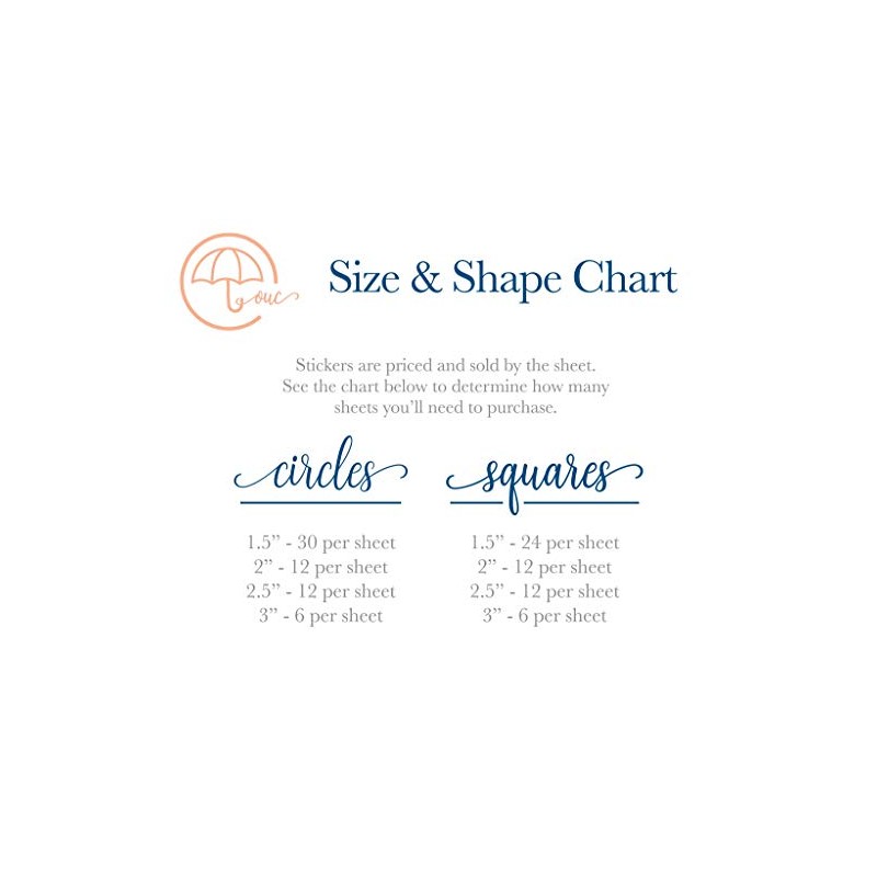 Each quantity purchased is equal to one sheet; each size/shape has a specific number of stickers per sheet. See the "quantity per order" chart in the images for more information.