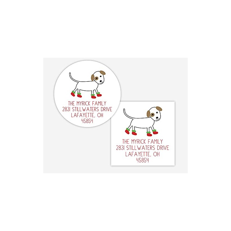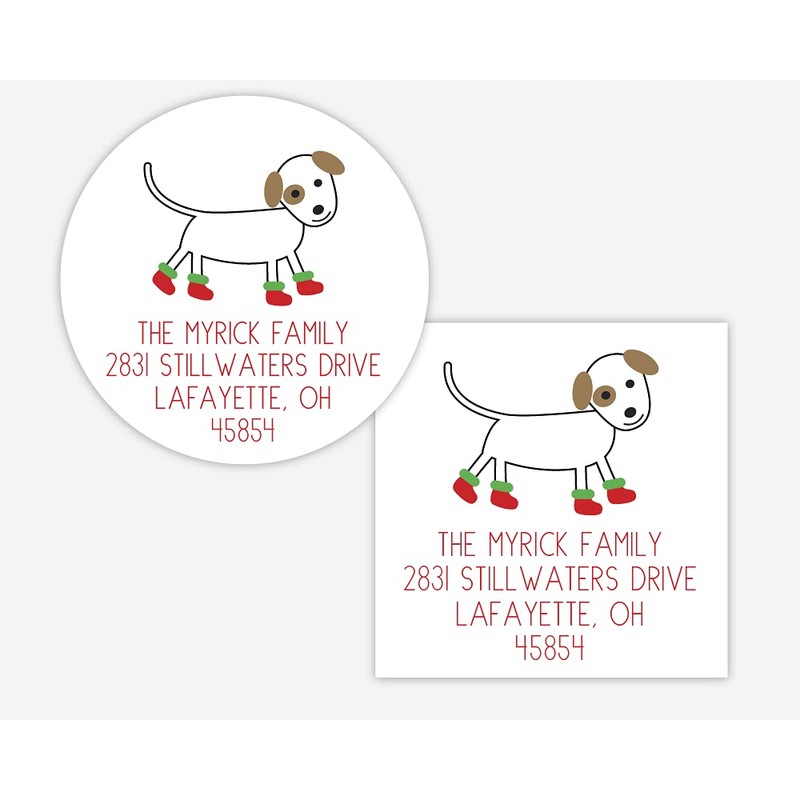 Christmas Address Stickers, Christmas Boots Dog Return Address Labels, Dog with Christmas Boots Envelope Seals (#352-2-WH)