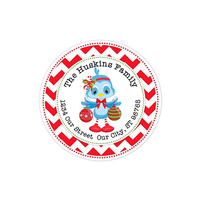 Christmas Address Stickers, CUSTOMIZED Sweet Blue Bird Christmas Labels, 2.5 inch round (24 count)