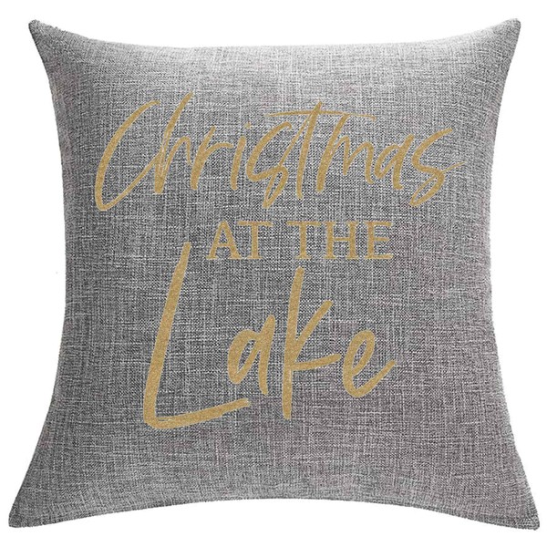 Christmas at the Lake Throw Pillow Cover, 12x20 18x18 Faux Linen, Decorative Sofa Couch, Sparkly or Matte, Red White Gold Green Grey (18x18-1 pillow cover, Gold Sparkly)