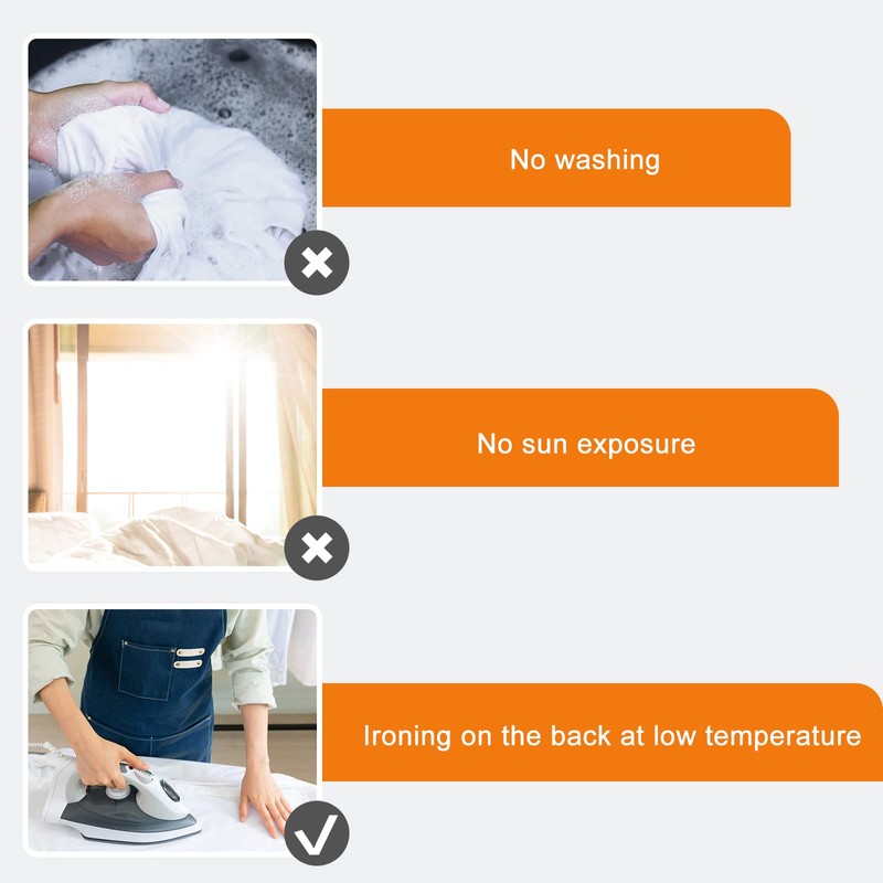 - Wrinkle Removal Methods: This product can only be folded for easy transportation, so you may notice wrinkles when you receive it, but don't worry! It can be removed easily. 1. Roll up tightly with a cylinder and wait 2 to 4 days. 2. Iron the back with a steam iron at low temperature (the lowest setting is 90°-100°).