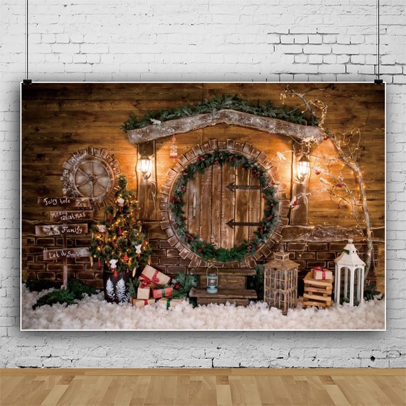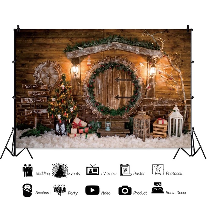 Christmas Background, Christmas Photo Background, Christmas Wooden Wall Photo Background, Christmas Photo Background with Xmas Wreath and Xmas Tree Vinyl 10 x 8 ft
