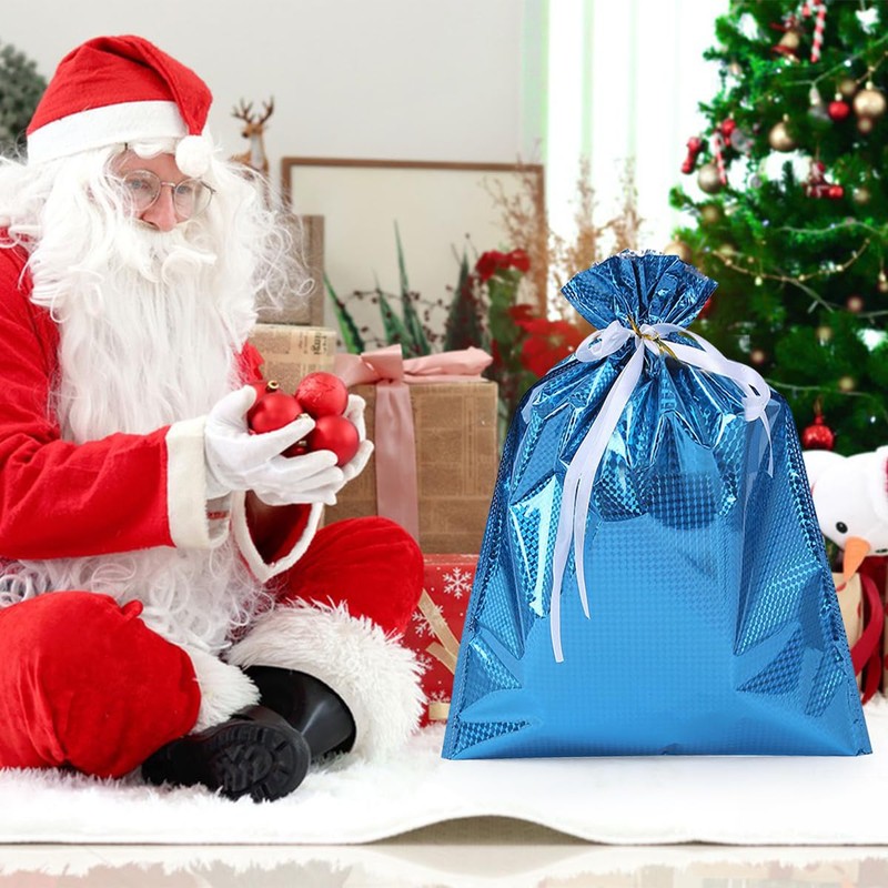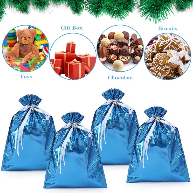 Christmas Bags - 4PCS 51 * 39 cm Large Size Xmas Gift Wrapping Bag, Blue Laser Christmas Drawstring Bags for Christmas Party