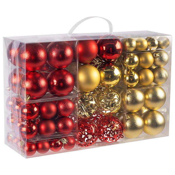 • Material of Christmas baubles red and gold: reusable plastic material, with the help of the storage box, you can safely store your Christmas decorations for the next use