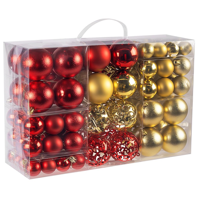 Christmas Baubles, Red Gold Christmas Tree Baubles, Set of 100, Plastic
