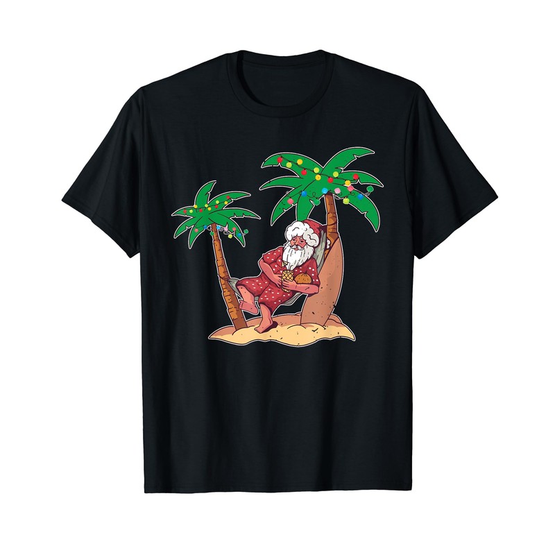 Christmas Beach Palm Tree With Xmas Lights Tropical Santa T-Shirt
