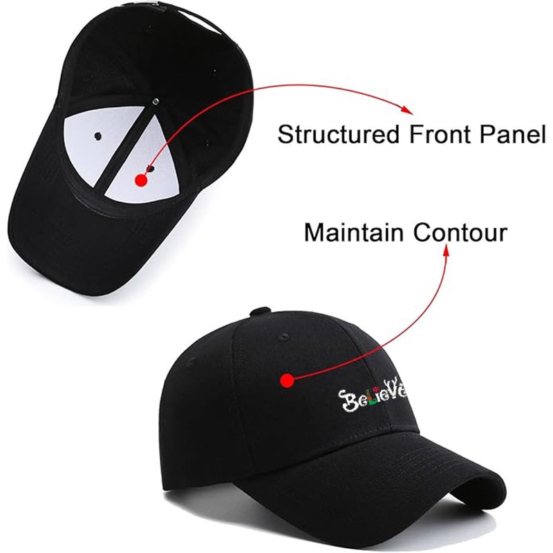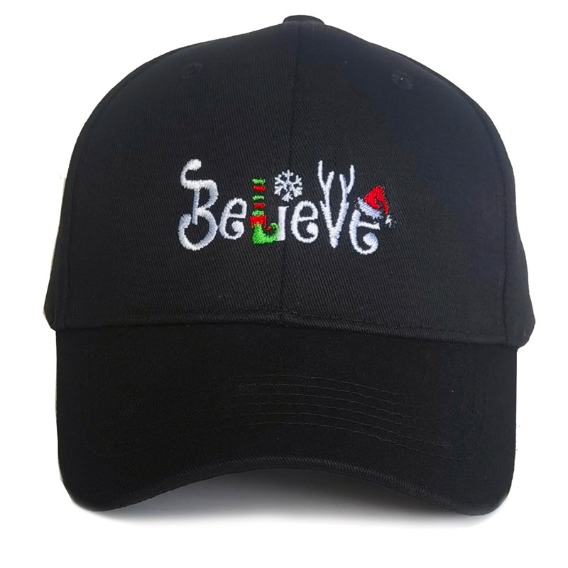Christmas Believe Baseball Cap for Women Men, Adjustable Embroidered Classic Cotton Snapback Hat Black