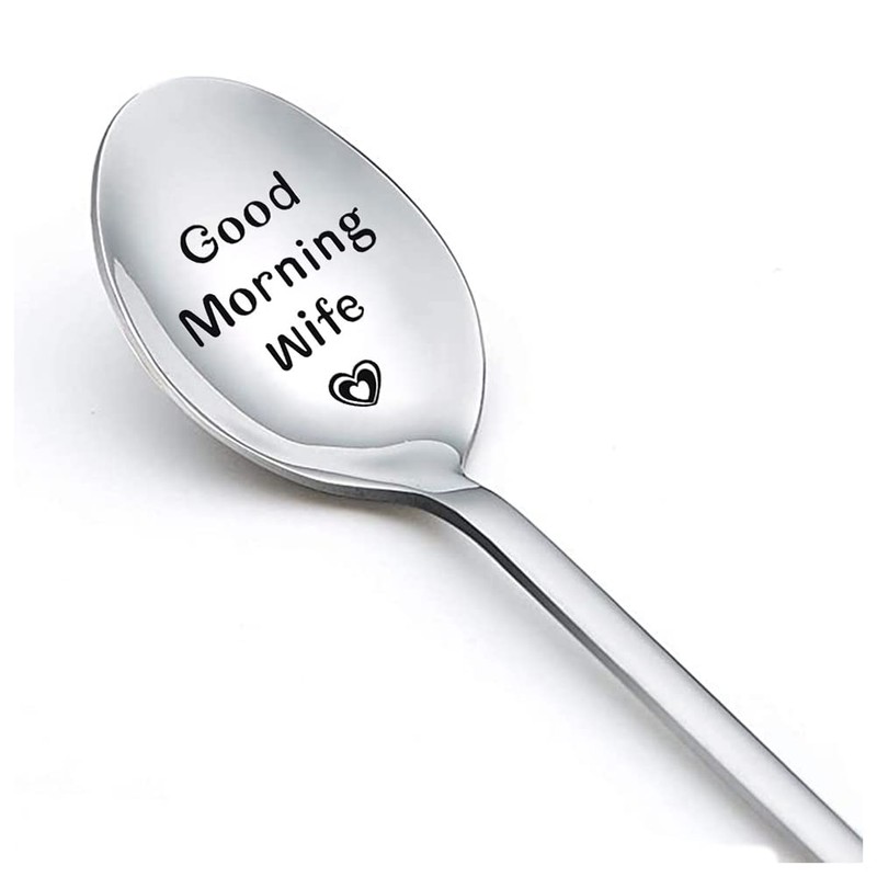 engraved spoon good morning wife, is a great valentines day gifts for wife from husband, marriage anniversary gift for wife, wifes birthday present, best anniversary gifts for wife, wife christmas gifts