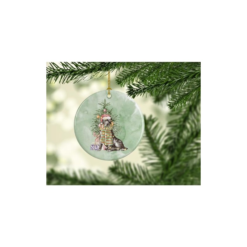 - Multicolor Christmas tree ornament. Porcelain Round, 2.8125 inch diameter.