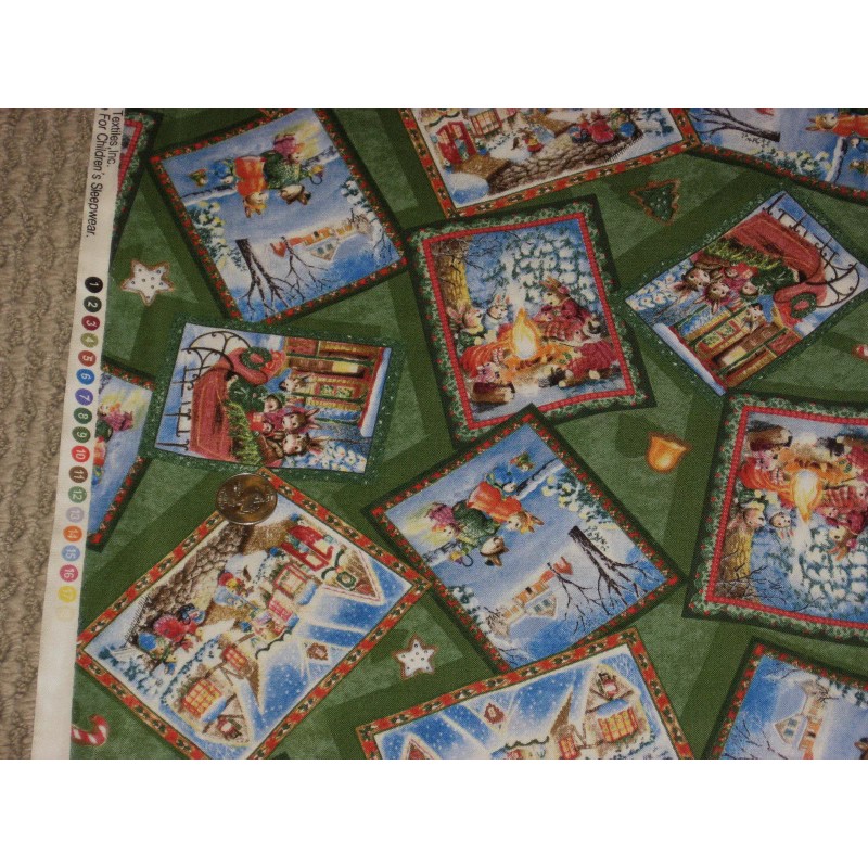 CHRISTMAS BUNNY SQUARES ON GREEN - BTHY - 18"X44"