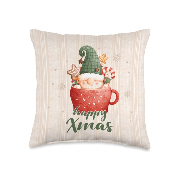 Christmas by Content Design Studio Christmas gnome in Cup, Wallpaper Pattern with Snowflakes Throw Pillow, 16x16, Multicolor