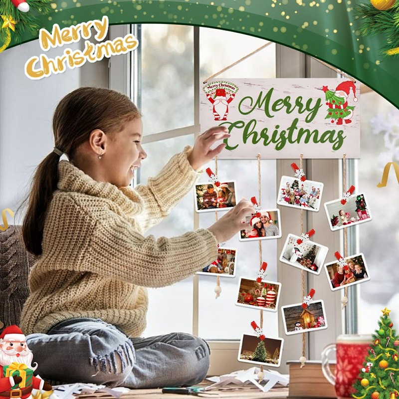 - Creates a Heartwarming Focal Point: Positioned prominently in your home, it invites people to stop and reflect on the memories you've captured. With each photo hanging on the clips, it tells a story, creating a heartfelt focal point for family and guests to admire during your Christmas celebrations.
