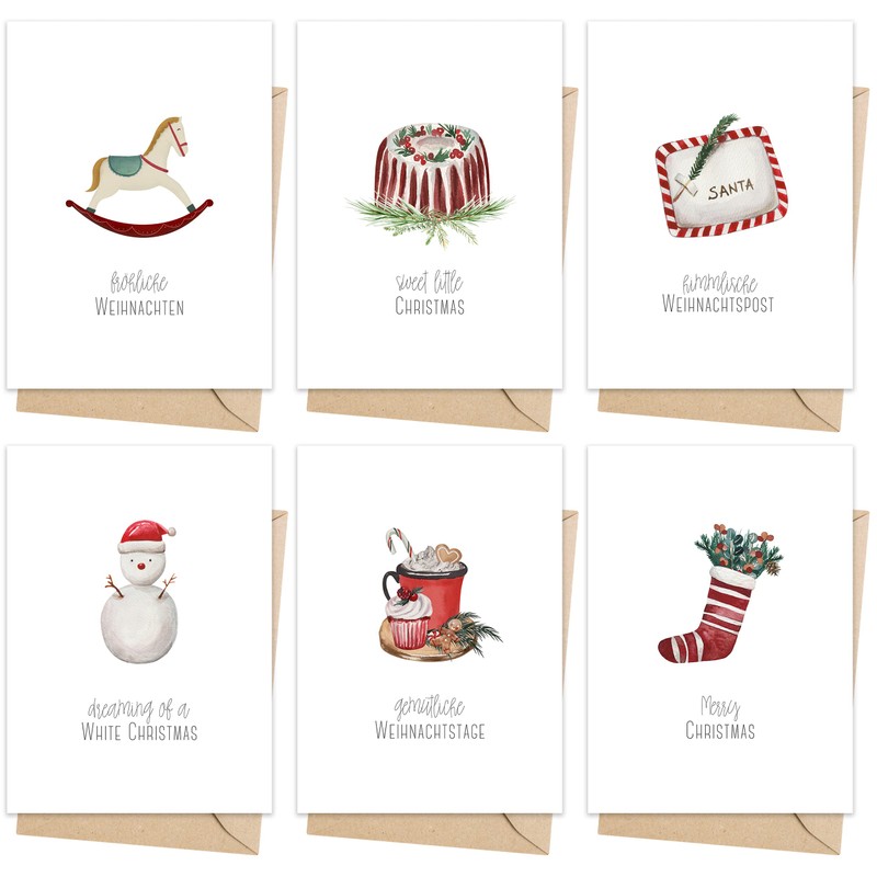 - What's in it: 12 x Christmas cards as folding cards set (DIN A6) on thick paper (350-400 g/m²) with 12 kraft paper envelopes (DIN C6)