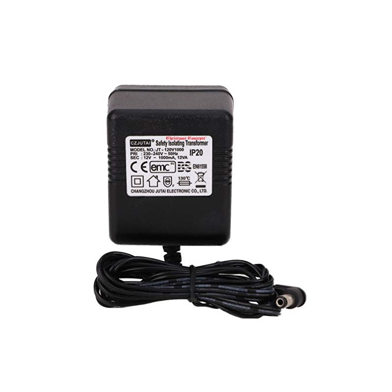 - Input: 220-240VA~50Hz. Output: 12VAC1000mA.