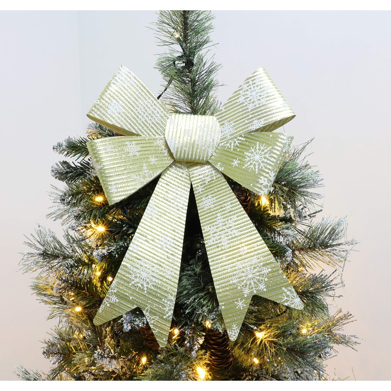 Christmas Concepts® 370mm (14.6") Gold With White Snowflakes Large Christmas Bow - Tree Decorations