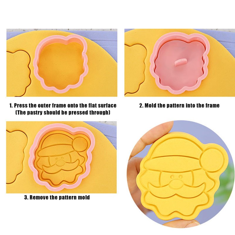- Unique Design and Easy to Use: Christmas cookie cutter featuring with 3D pressable designs。It only takes three easy steps to make,as shown in the video: 1.Use the outer width to cut shape 2. Put into the inner frame and press 3. Remove the , and done!