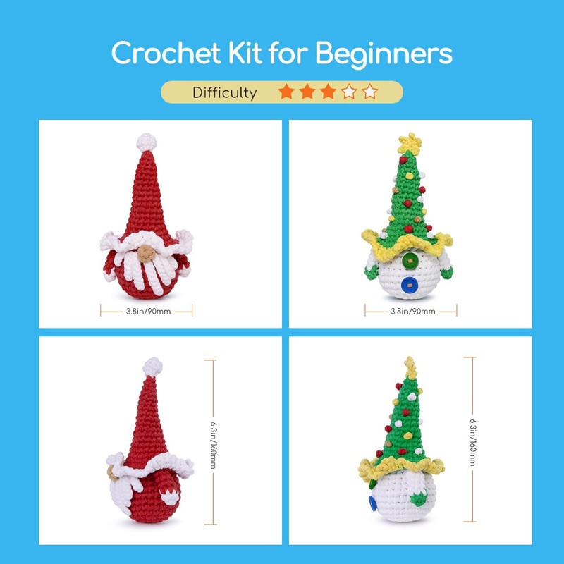 - All-In-One Crochet Starter Kit: Christmas crochet kits comes with everything you need to create adorable Christmas gnome, includes beginner-friendly instruction and video. With all the necessary tools conveniently packaged together, you can save time and effort by not having to search for each component individually